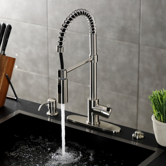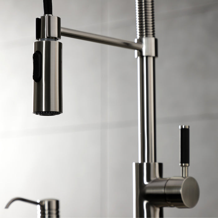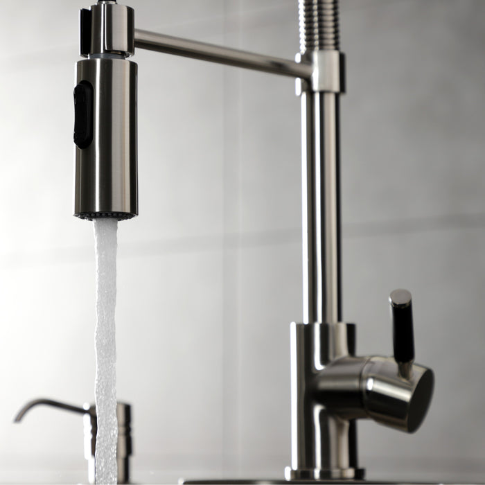 Kingston Sona LS8778DKL - Kaiser Single-Handle 1-Hole Deck Mount Pre-Rinse Kitchen Faucet, Brushed Nickel