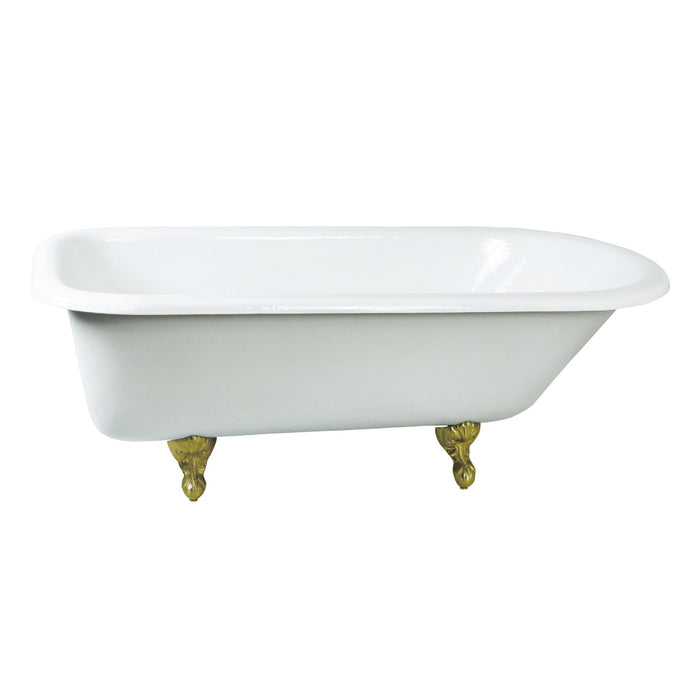 Kingston Heirloom NHVCTND673123T7 - Aqua Eden 66-Inch Cast Iron Oval Rectangular Roll Top Clawfoot Tub (No Faucet Drillings), White/Brushed Brass