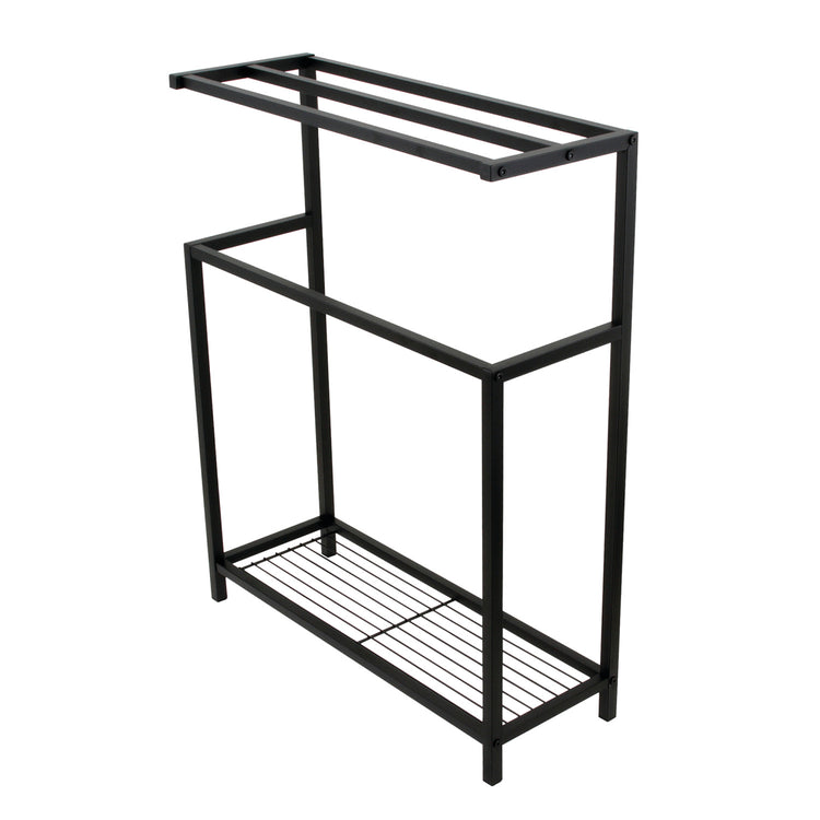 With a chic and stylish design, the Edenscape freestanding towel rack will stand out in your bathroom. Use its multi-tiered design and shelf for extra storage to hang/fold your various towel, clothing, or other accessories. The towel rack is constructed from steel for usage for years to come.