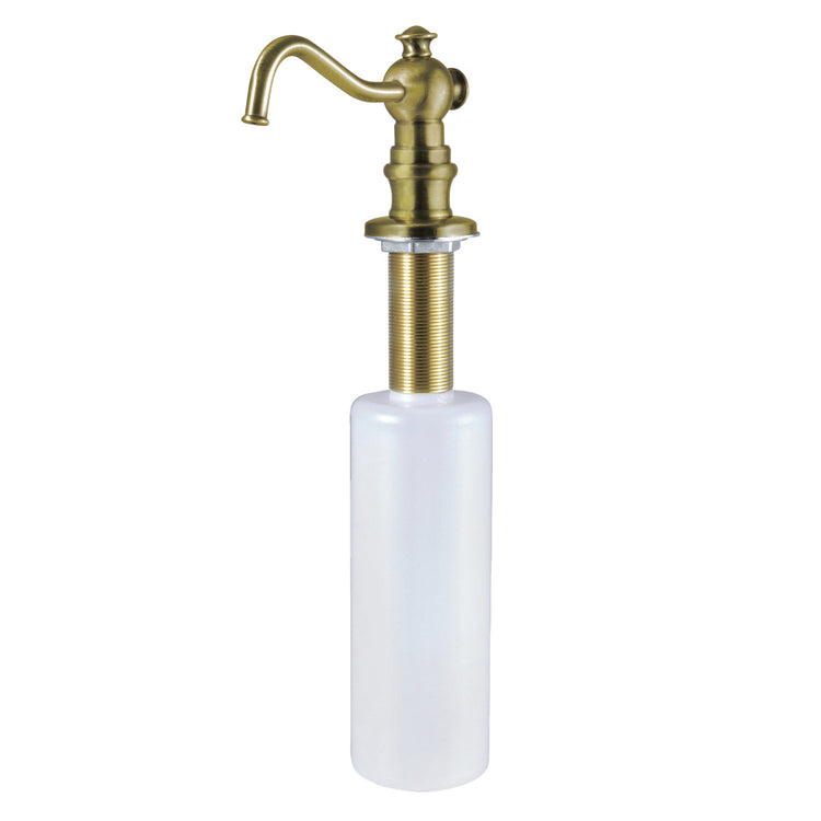 The Kingston Brass Vintage curved nozzle soap dispenser provides a cleaner look in the kitchen by allowing users to keep soap dispensers off the counter. Easily dispense soap with the push-down mechanism while adding a stylistic flair to your traditional home.