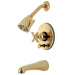 Integrating eclectic style in your home is easy with this tub and shower faucet's classical design. Complete with an easy-to-turn cross handle, an optimum bathing experience awaits. Enjoy the sturdy brass construction and premium polished brass finish for a fixture that will last for years to come. A pressure balanced valve is included for safety and protection against accidental burns.