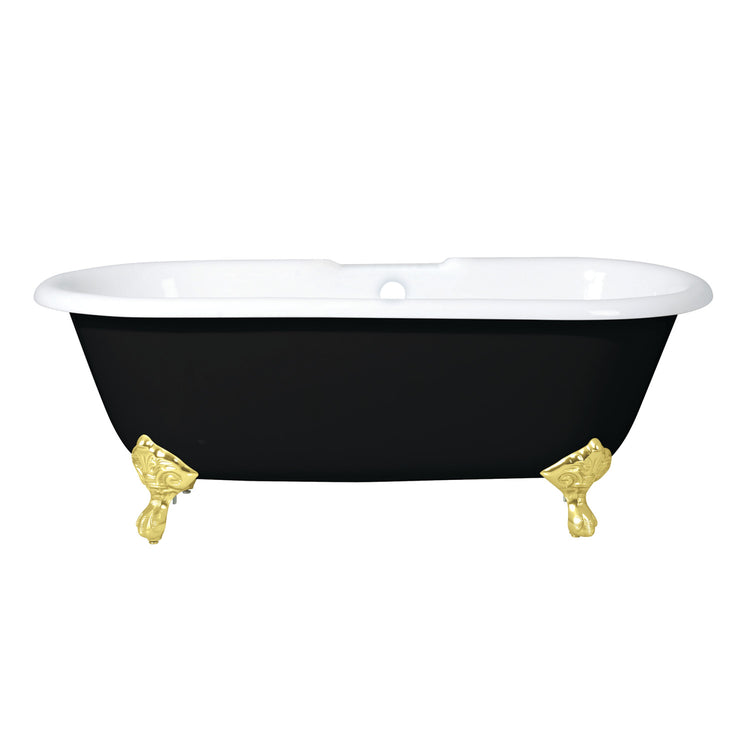 Aqua Eden VBT7D663013NB2 66-Inch Cast Iron Oval Double Ended Clawfoot Tub (7-Inch Faucet Drillings), Black/White/Polished Brass