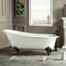 Surround yourself with the perfumed aroma of your favorite candle, grab your favorite piece of literature, and soak all of the stresses of the day away with the all-encompassing embrace of one of Kingston Brass' finest products, the clawfoot tub. Since the late 19th century, the claw foot tub has stood prominent among bathroom fixtures for its outstanding grandeur. The Aqua Eden 54" cast iron slipper clawfoot tub with 7" faucet drillings will wholly beautify your home for years to come thanks to its durable and heavy cast iron construction. Elegantly crafted clawfoot tub feet are included to further elevate your home's traditional eminence. Aside from its feet, this bathtub is enameled in glossy white for a classic look, exceptional durability, and easy care and maintenance for years to come.