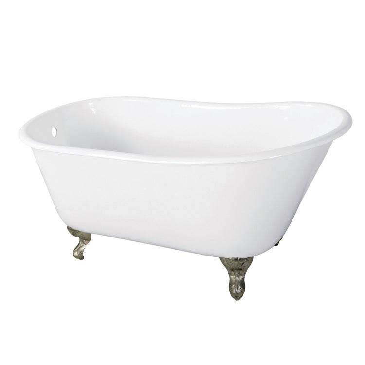 Kingston Heirloom VCTND5728NT8 - Onamia 57-Inch Cast Iron Oval Single Slipper Clawfoot Tub (No Faucet Drillings), White/Brushed Nickel