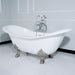 Surround yourself with the perfumed aroma of your favorite candle, grab your favorite piece of literature, and soak all of the stresses of the day away with the all-encompassing embrace of one of Kingston Brass' finest products, the clawfoot tub. Since the late 19th century, the claw foot tub has stood prominent among bathroom fixtures for its outstanding grandeur. The Aqua Eden 72" cast iron double slipper clawfoot tub will wholly beautify your home for years to come thanks to its durable and heavy cast iron construction. Elegantly crafted clawfoot tub feet are included to further elevate your home's traditional eminence. Aside from its feet, this bathtub is enameled in glossy white for a classic look, exceptional durability, and easy care and maintenance for years to come.