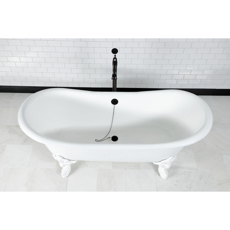 Surround yourself with the perfumed aroma of your favorite candle, grab your favorite piece of literature, and soak all of the stresses of the day away with the all-encompassing embrace of one of Kingston Brass' finest products, the clawfoot tub. Since the late 19th century, the claw foot tub has stood prominent among bathroom fixtures for its outstanding grandeur. The Aqua Eden 72" cast iron double slipper clawfoot tub (no faucet drillings) will wholly beautify your home for years to come thanks to its durable and heavy cast iron construction. Elegantly crafted clawfoot tub feet are included to further elevate your home's traditional eminence. This bathtub is enameled in glossy white for a classic look, exceptional durability, and easy care and maintenance for years to come, and its feet are a glossy white to match.
