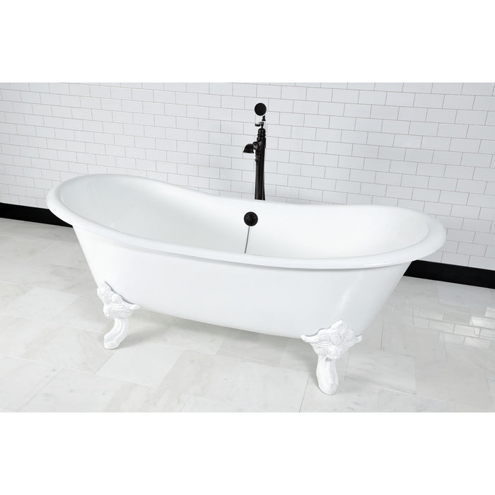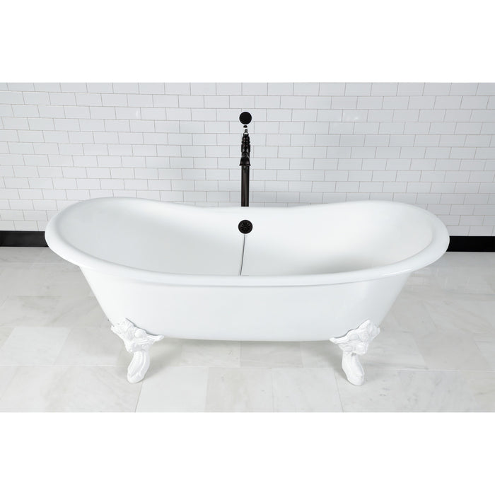 Kingston Heirloom VCTNDS7231NLW - Aqua Eden 72-Inch Cast Iron Oval Double Slipper Clawfoot Tub (No Faucet Drillings), White