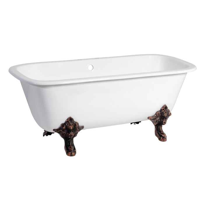 Kingston Heirloom VCTQ7D6732NL5 - Aqua Eden 67-Inch Cast Iron Rectangular Double Ended Clawfoot Tub (7-Inch Faucet Drillings), White/Oil Rubbed Bronze
