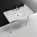 With a beautiful ceramic counter top, this console sink set is a long lasting, durable, and elegant addition to your bathroom. A fabulous alternative where space is limited or tight, making them friendly for the whole family. The pristine, stain-resistant surface and glistening finish make for a very sturdy fixture that is easily maintained. Also for your convenience, anti-slip rubber pads are included with the stainless steel legs to ensure steadiness. Water supply kit, drain assembly, and the faucet are sold separately.