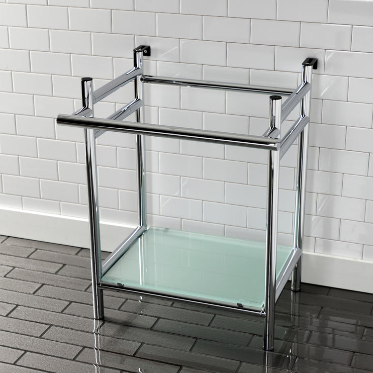 Kingston Sona VPB2216301 - Fauceture Stainless Steel Console Sink Base with Glass Shelf, Frosted Glass/Polished Chrome
