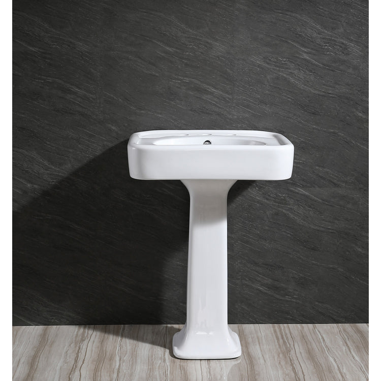 Elevate your home's traditional decorum as you transform your bathroom into a space inspired by picturesque Roman architecture. Pedestal sinks offer an authentic vintage look and are the perfect choice for a period style room. Best suited for smaller bathrooms and powder rooms, the unique detailing and style of this sink will create a more open appearance. Additionally, the porcelain construction is stain resistant and glistening to make for a very sturdy fixture that is easily maintained. Pair with VPB2268B basin for a complete set.