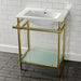 Kingston Sona VPB24187W17 - Sheridan 24-Inch Ceramic Console Sink with Stainless Steel Legs and Glass Shelf (1-Hole), White/Brushed Brass