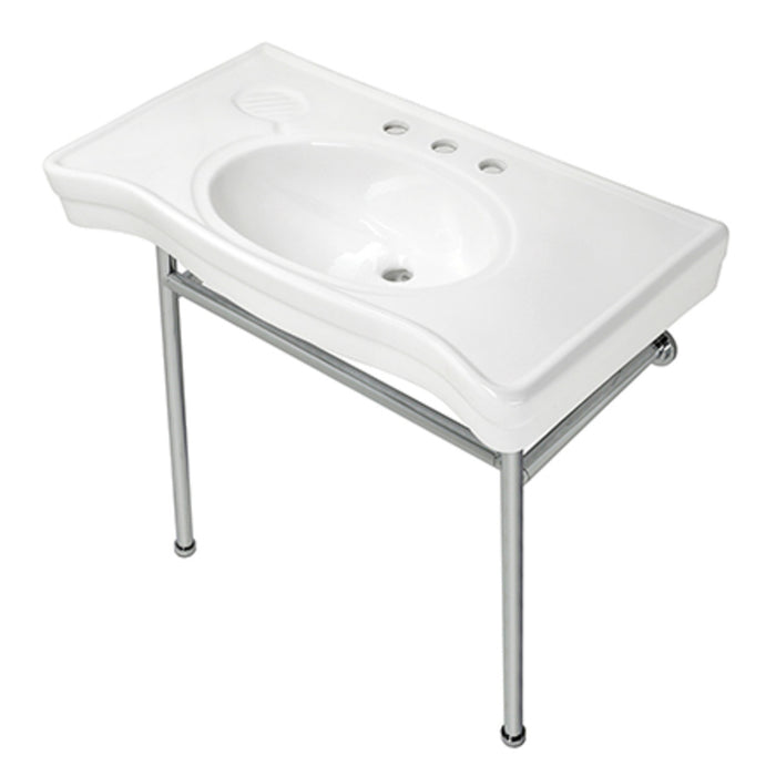 Bristol VPB28140W81 36-Inch Ceramic Console Sink with Stainless Steel Legs (8-Inch, 3-Hole), White/Polished Chrome