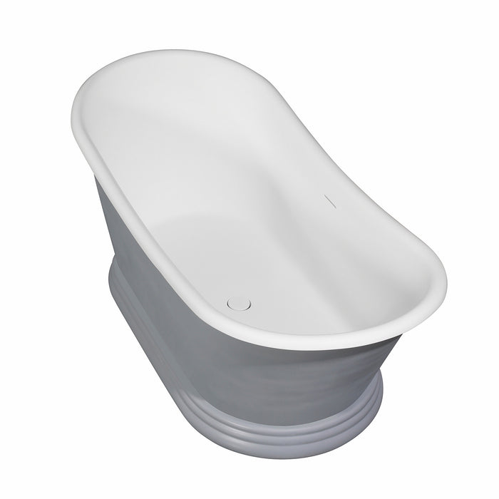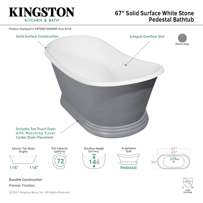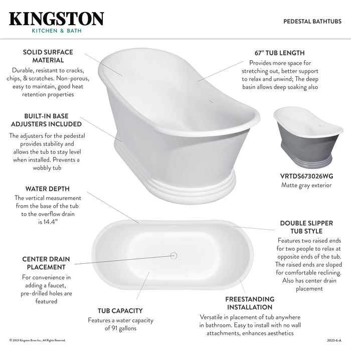 Kingston Heirloom VRTDS673026WG - Arcticstone 67-Inch Solid Surface Oval Double Slipper Pedestal Tub with Drain (No Faucet Drillings), Glossy White/Matte Gray
