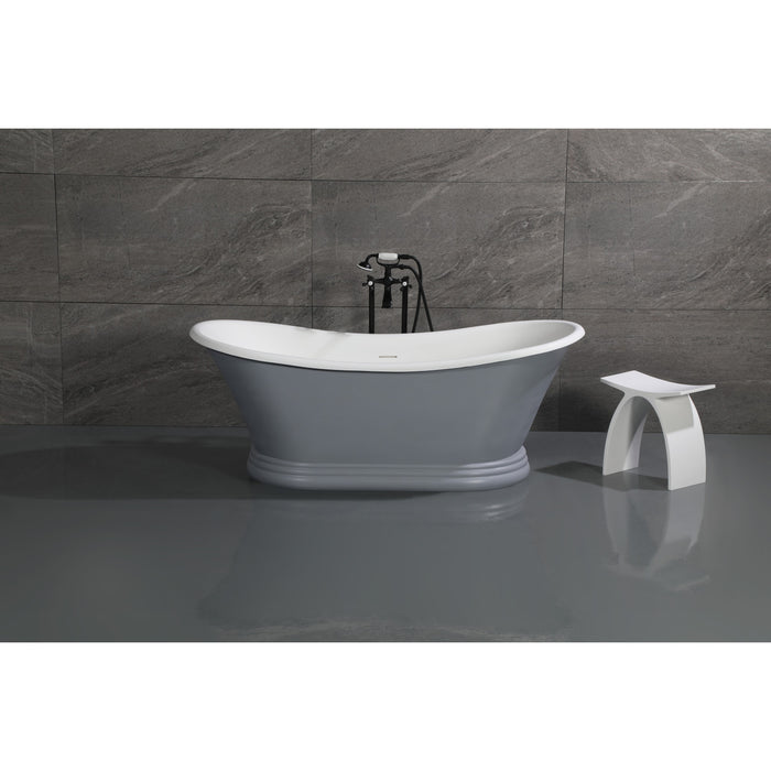 Incorporate the regal beauty of a Kingston Brass pedestal tub for years and years of luxury baths suitable for royalty. Pedestal tubs are generally categorized as the contemporary descendant of the classic clawfoot tub. However, unlike the clawfoot tub, pedestal tubs rely on a solid base ring bordering the bottom perimeter to support and raise it off the floor, giving it a one-of-a-kind personality. The Aqua Eden Arcticstone 67-inch double slipper solid surface pedestal tub with drain will wholly beautify your home for years to come thanks to its durable and scratch resistant solid surface white stone construction. This bathtub's exterior is finished in a sultry matte grey to bring a uniquely sensual designer influence into your space, while its interior and inner rim are a polished glossy white to ensure simple care and cleaning over time.
