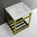 Quadras VWP2522A7 25-Inch Ceramic Console Sink with Steel Base and Shelf (1-Hole), White/Brushed Brass