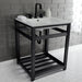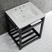 Kingston Sona VWP2522W8A0 - Quadras 25-Inch Ceramic Console Sink with Steel Base and Shelf (8-Inch, 3-Hole), White/Matte Black