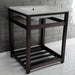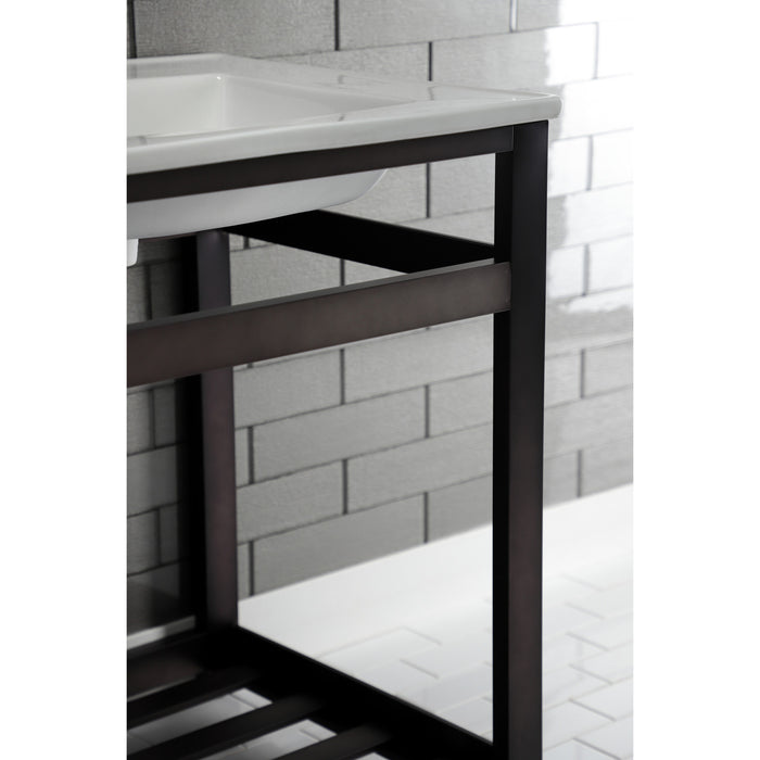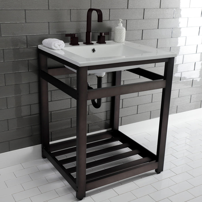 Kingston Sona VWP2522W8A5 - Quadras 25-Inch Ceramic Console Sink with Steel Base and Shelf (8-Inch, 3-Hole), White/Oil Rubbed Bronze