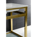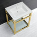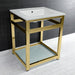 Kingston Quadras VWP2522W8B2 25-Inch Ceramic Console Sink with Steel Base and Glass Shelf (8-Inch, 3-Hole), White/Polished Brass