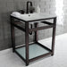 Kingston Quadras VWP2522W8B5 25-Inch Ceramic Console Sink with Steel Base and Glass Shelf (8-Inch, 3-Hole), White/Oil Rubbed Bronze