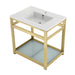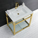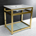 Kingston Sona VWP3122B2 - Quadras 31-Inch Ceramic Console Sink with Steel Base and Glass Shelf (1-Hole), White/Polished Brass