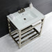 Kingston Sona VWP3122W4A6 - Quadras 31-Inch Ceramic Console Sink with Steel Base and Shelf (4-Inch, 3-Hole), White/Polished Nickel